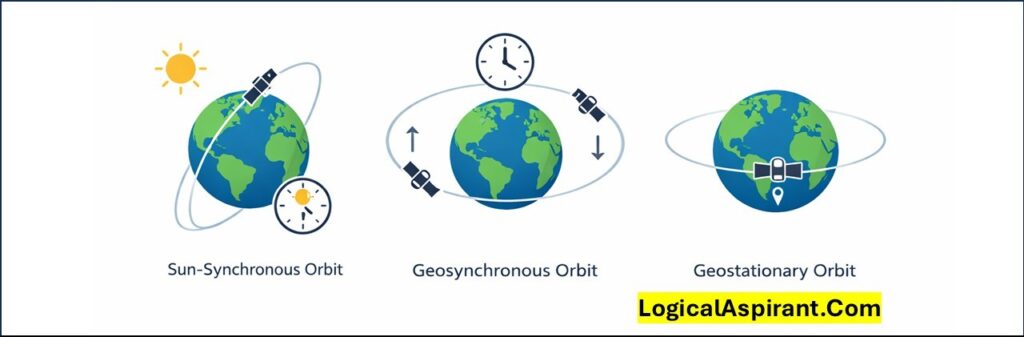 | Sun-Synchronous (SSPO) | 200 – 1,000 km | Polar (North-South) | Earth Observation: Passes over a spot at the same local solar time, ensuring consistent lighting for imagery. |